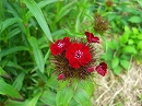 こちらは畑にある梅の木の根元で咲いている西洋なでしこです。大人チックなお色です。
